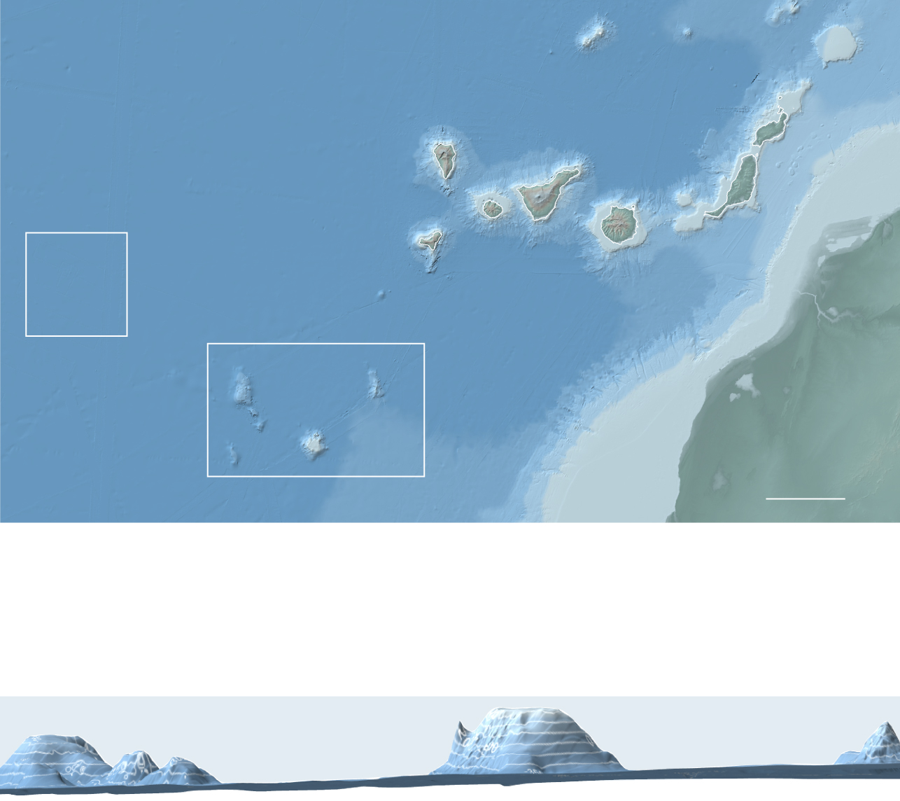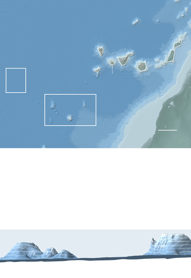 Beaucoup de ces îles submergées ont été découvertes il y a quelques années seulement par l’équipe de Somoza. La forme de certaines d’entre elles est presque identique aux îles Canaries visibles aujourd’hui, comme s’il s’agissait d’une sorte d’expérience; “une île pré-Canarienne”, comme le dit Somoza.