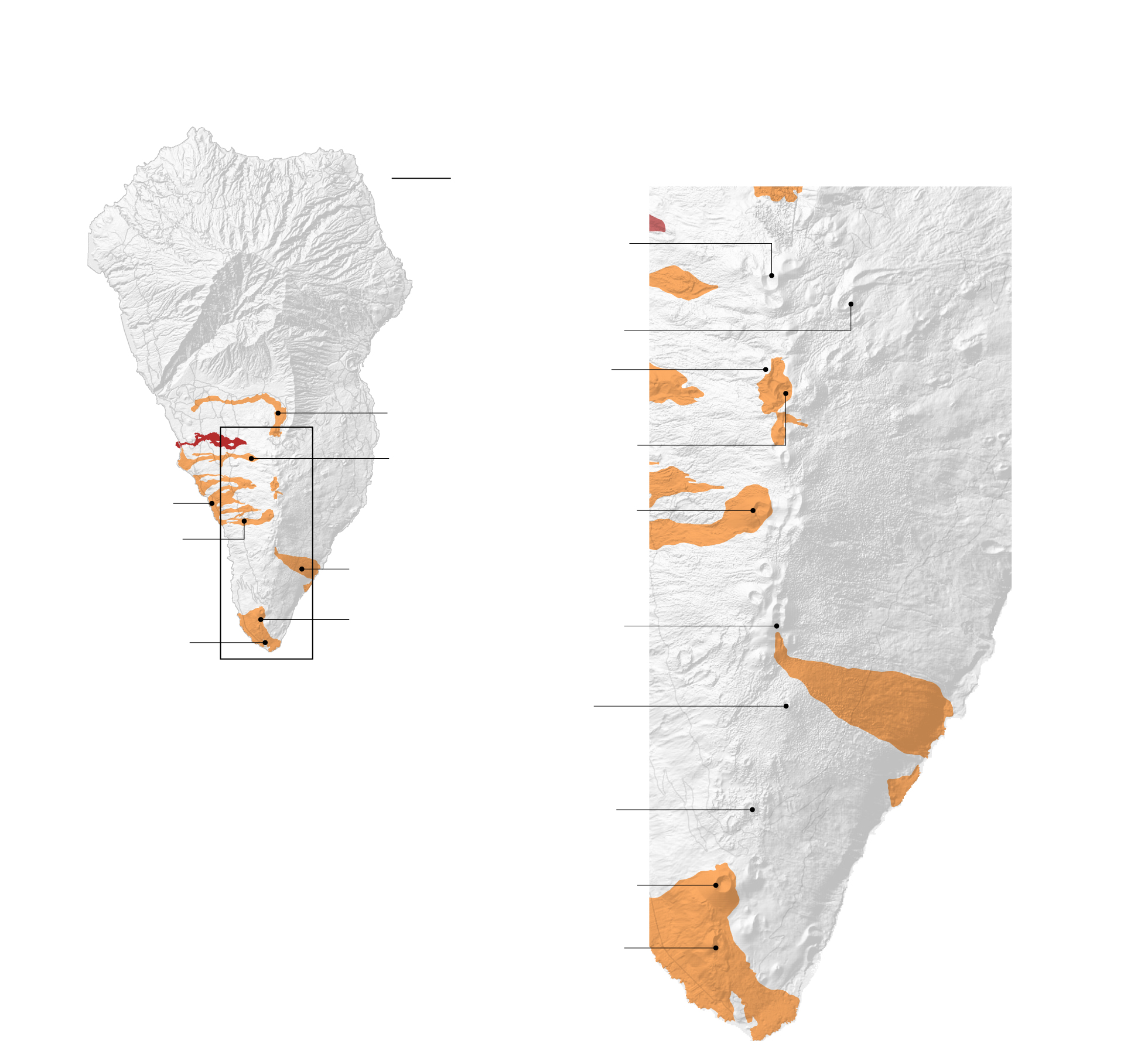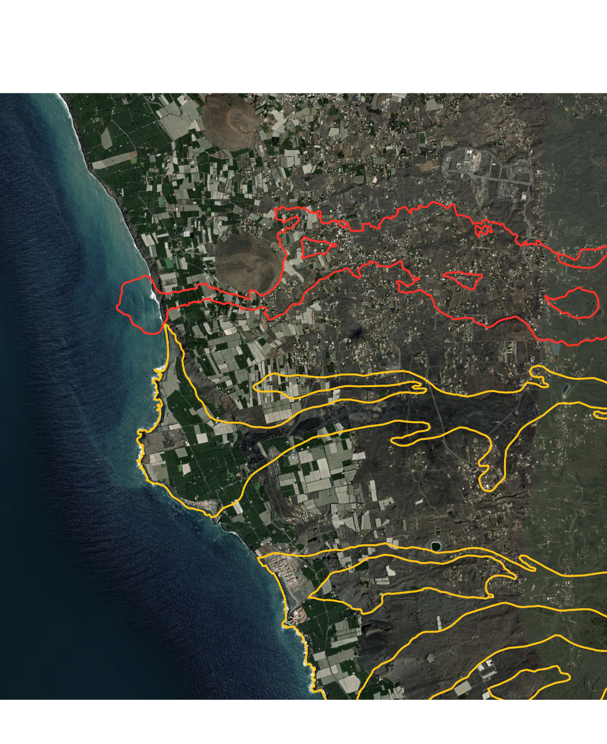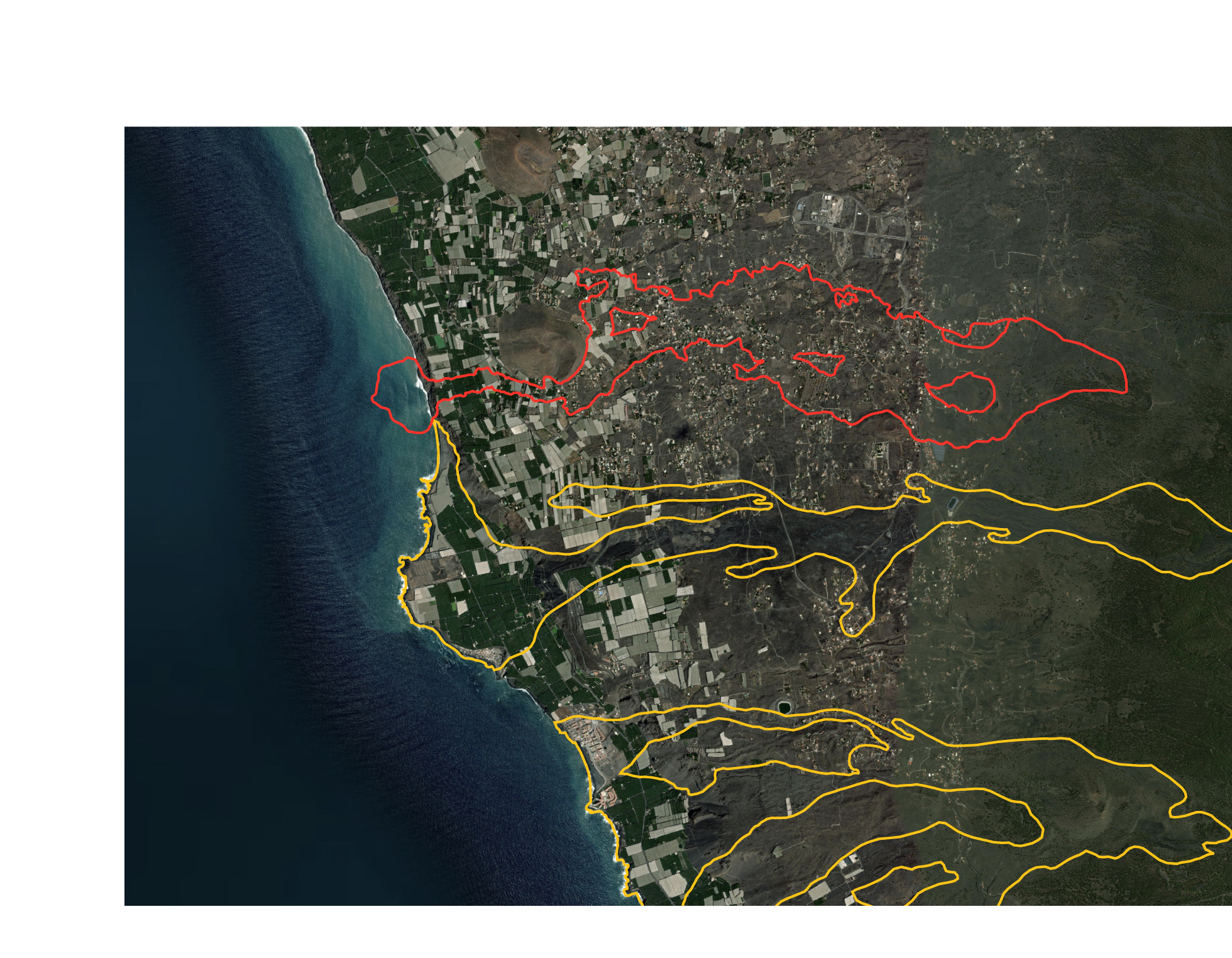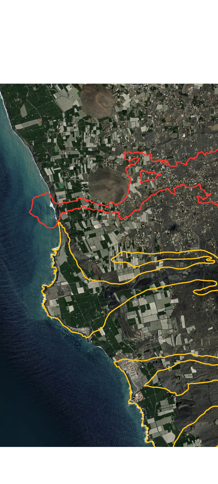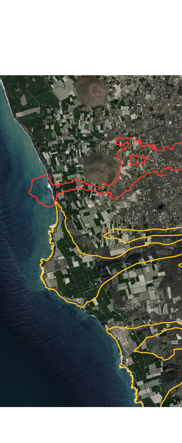 L’éruption actuelle et celles des 500 dernières années ont provoqué l’extension de l’île vers l’ouest, laissant des plates-formes de lave sur le fond marin.