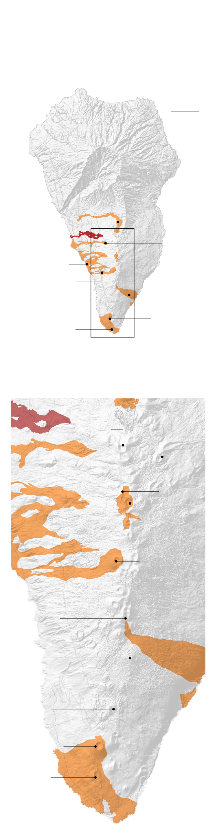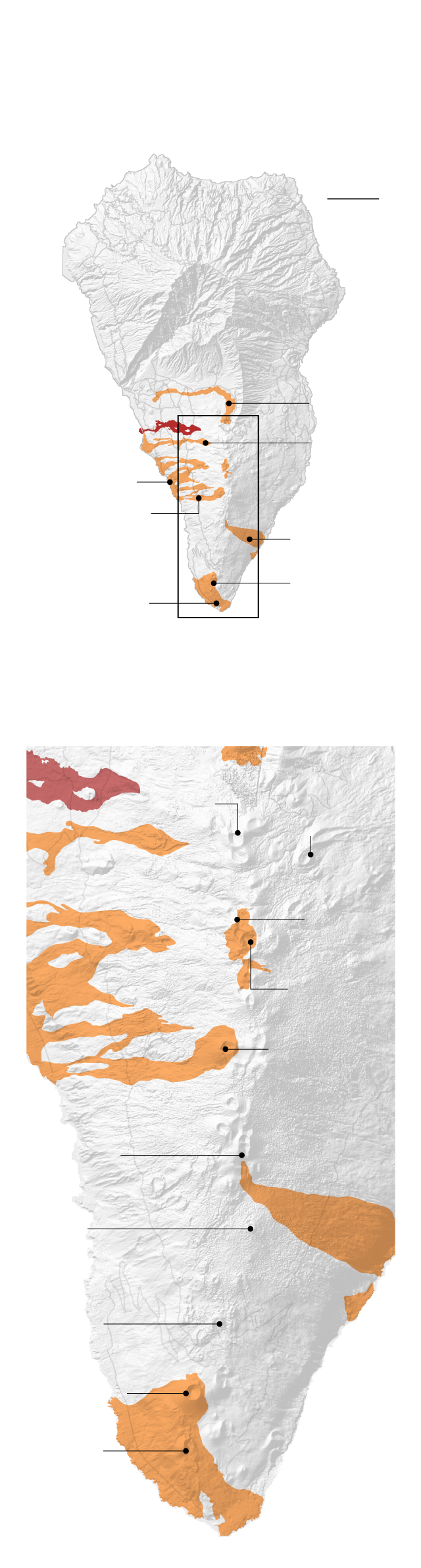 Le graphique ci-dessus montre l’éruption de la Cabeza de Volcan Vaca sur La Palma du 21 septembre au 1er octobre. Les rivières de lave ont détruit ou endommagé plus d’un millier de bâtiments, bien plus que ce qui a été enregistré lors d’autres éruptions. C’est le dernier chapitre d’une histoire d’activité volcanique qui a commencé il y a plus de 20 millions d’années. C’est un phénomène à la fois destructeur et créatif, car sans les volcans, aucune des îles Canaries n’existerait.