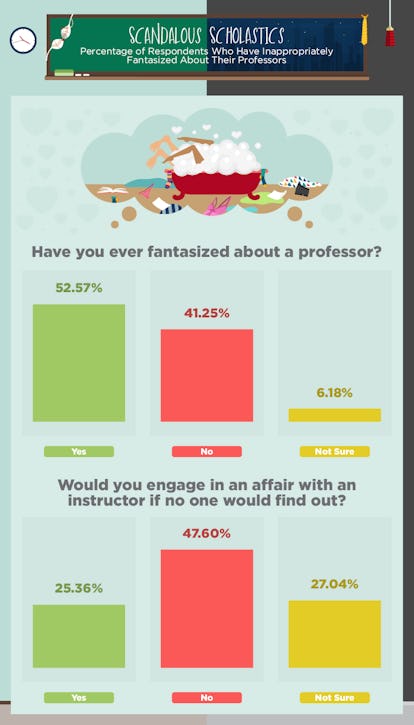 det kanske inte är så konstigt som det låter. Och plus, vi pratar college här,så alla är ålder. “Att bryta ner hindren för uppfattning mot verkligheten i sexuella relationer mellan professorer och studenter, fann vi att denna fantasi kanske inte är så risqu bisexual som ursprungligen trodde,” CollegeStats.org förklarar. “Många av dem vi undersökte berättade för oss att dessa sexuella förbindelser inträffade bland vuxna som var ungefär samma ålder och att de var mer benägna att vara engångsmöten snarare än långvariga affärer. Och de flesta ångrade inte beslutet.”